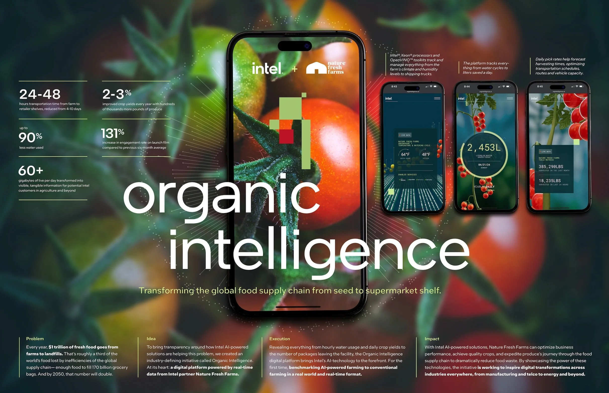 That’s why we built the Organic Intelligence platform with Nature Fresh Farms. Powered by Intel AI, it's designed to bring full transparency to how technology is transforming farming.